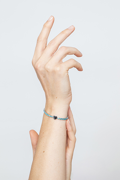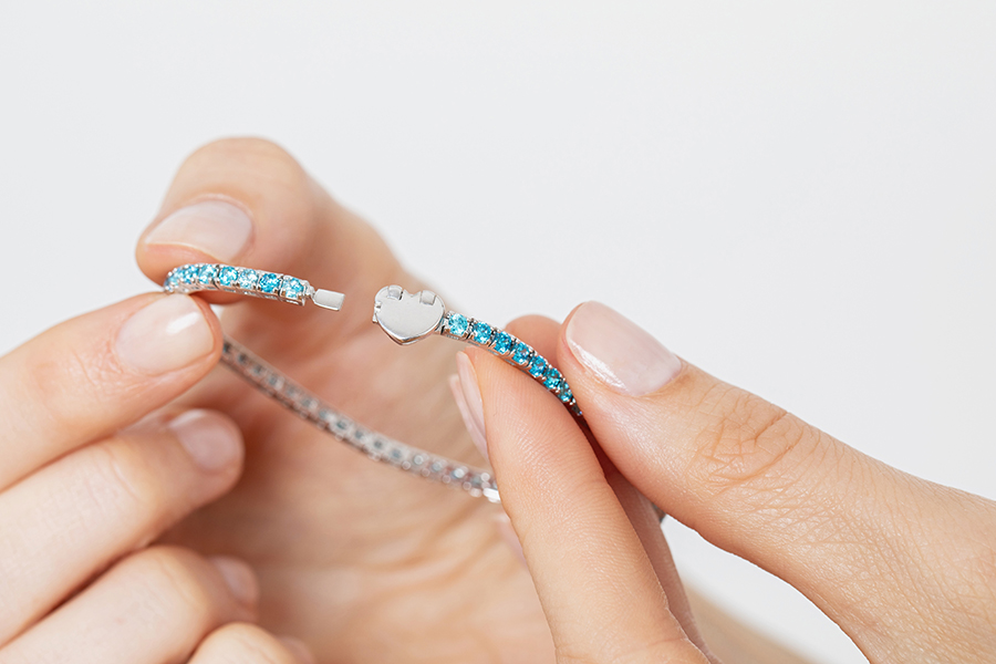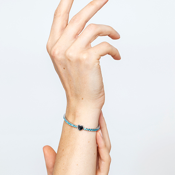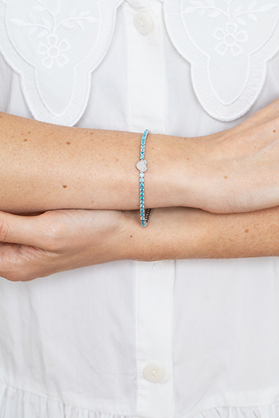 Tennis in bronzo “Promenade” con chiusura a cuore e topazio sky.